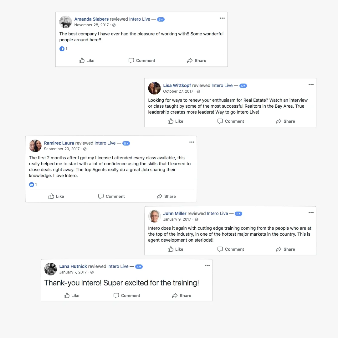 The best agents are some of the most informed and educated. We like to think that our coaching is far more effective than classes and handouts. See some of the conversations that take place everyday at Intero.